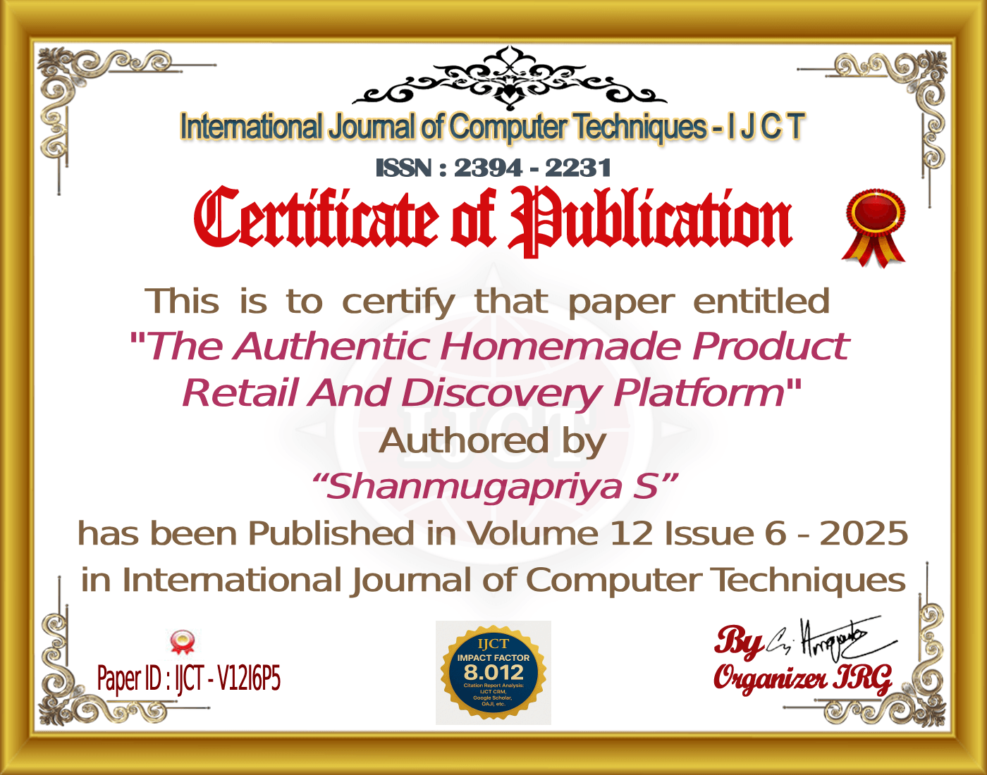 The Authentic Homemade Product Retail And Discovery Platform | IJCT Volume 12 – Issue 6 | IJCT-V12I6P5