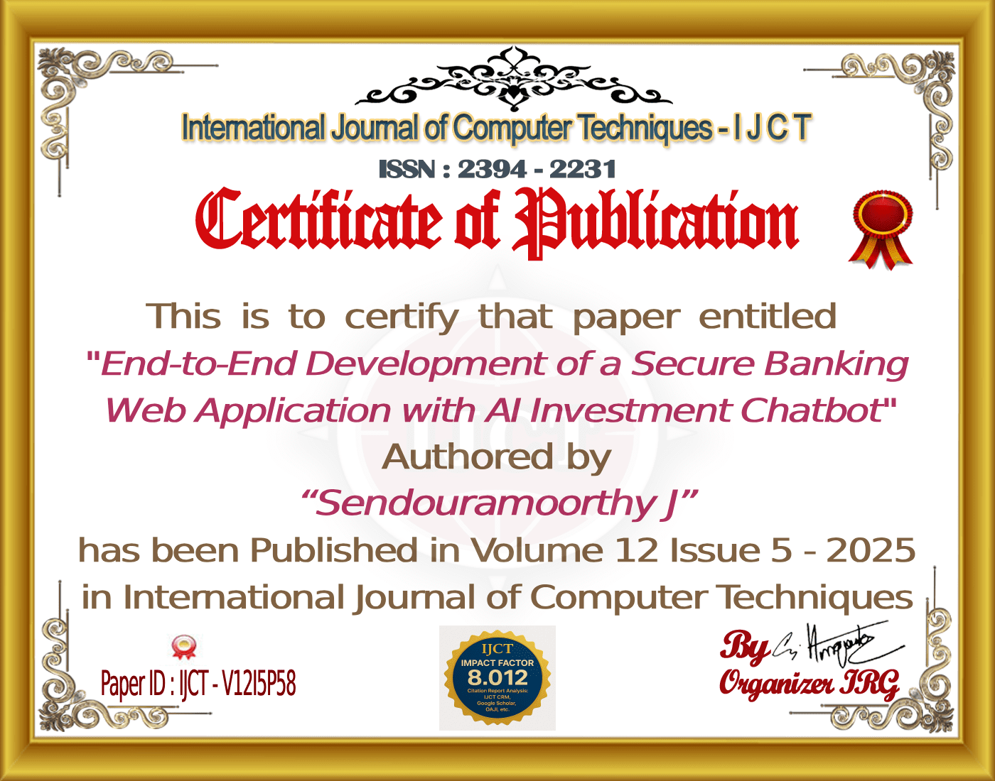 End-to-End Development of a Secure Banking Web Application with AI Investment Chatbot | IJCT Volume 12 – Issue 5 | IJCT-V12I5P58