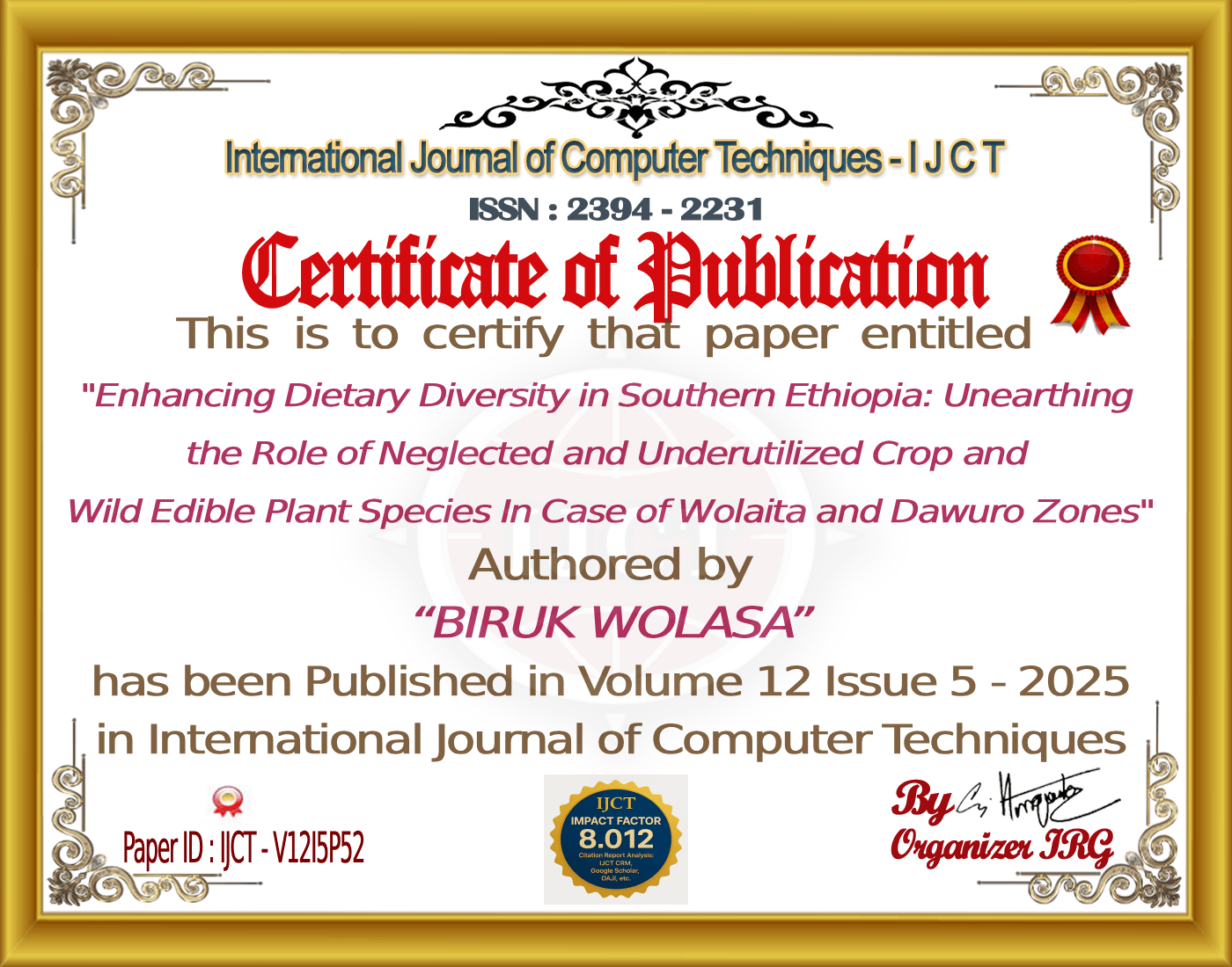 Enhancing Dietary Diversity in Southern Ethiopia: Unearthing the Role of Neglected and Underutilized Crop and Wild Edible Plant Species In Case of Wolaita and Dawuro Zones | IJCT Volume 12 – Issue 5 | IJCTV-12I5P52