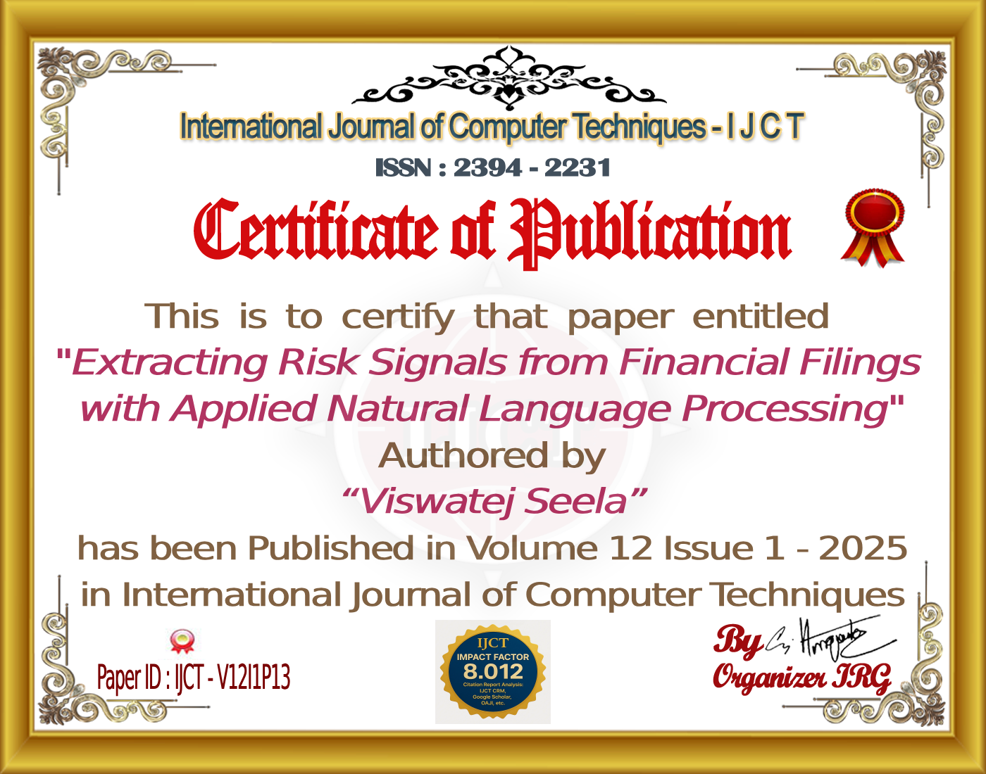 Viswatej Seela (2025). Extracting Risk Signals from Financial Filings with Applied Natural Language Processing. International Journal of Computer Techniques, 12(1). ISSN: 2394-2231.