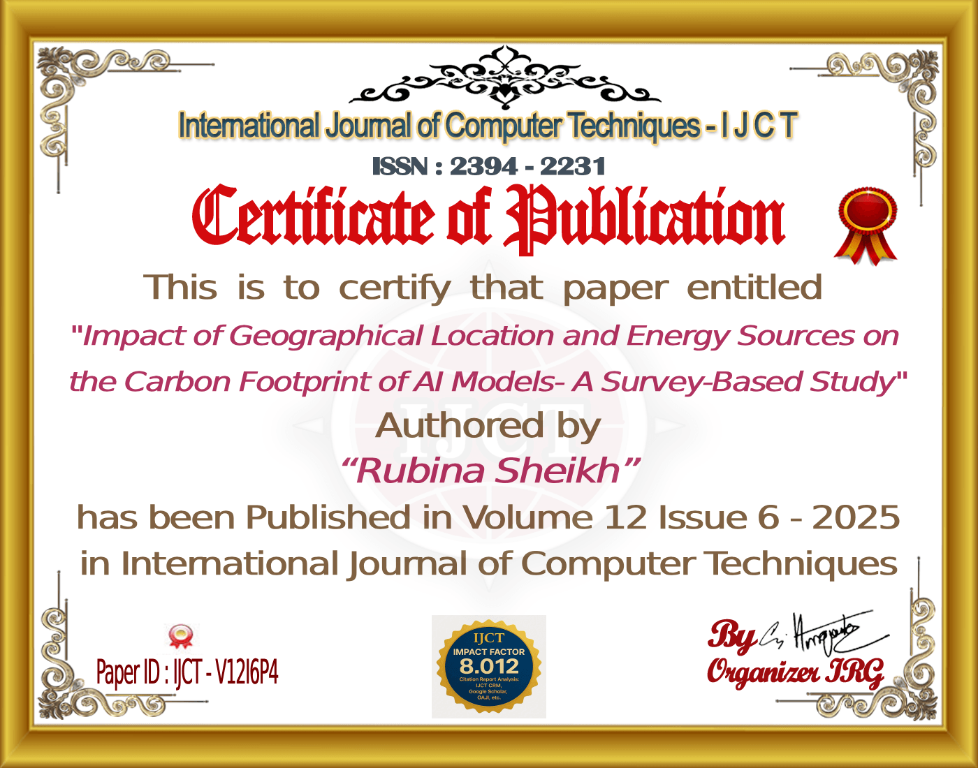 Impact of Geographical Location and Energy Sources on the Carbon Footprint of AI Models- A Survey-Based Study | IJCT Volume 12 – Issue 6 | IJCT-V12I6P4