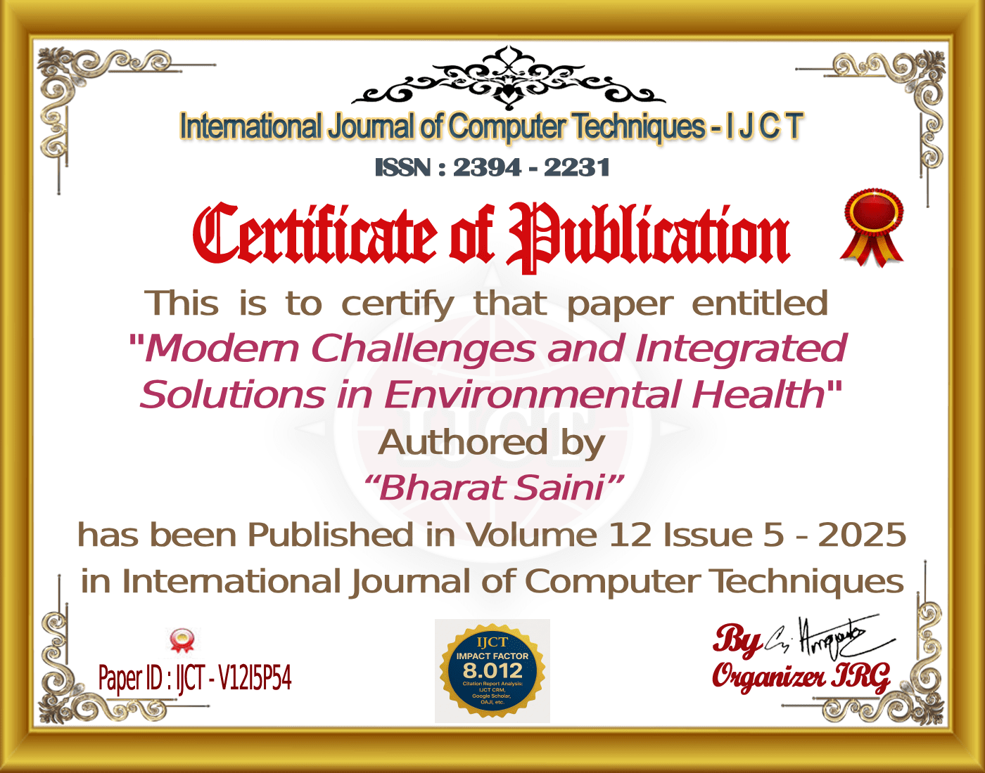 Modern Challenges and Integrated Solutions in Environmental Health | IJCT Volume 12 – Issue 5 | IJCT-V12I5P54