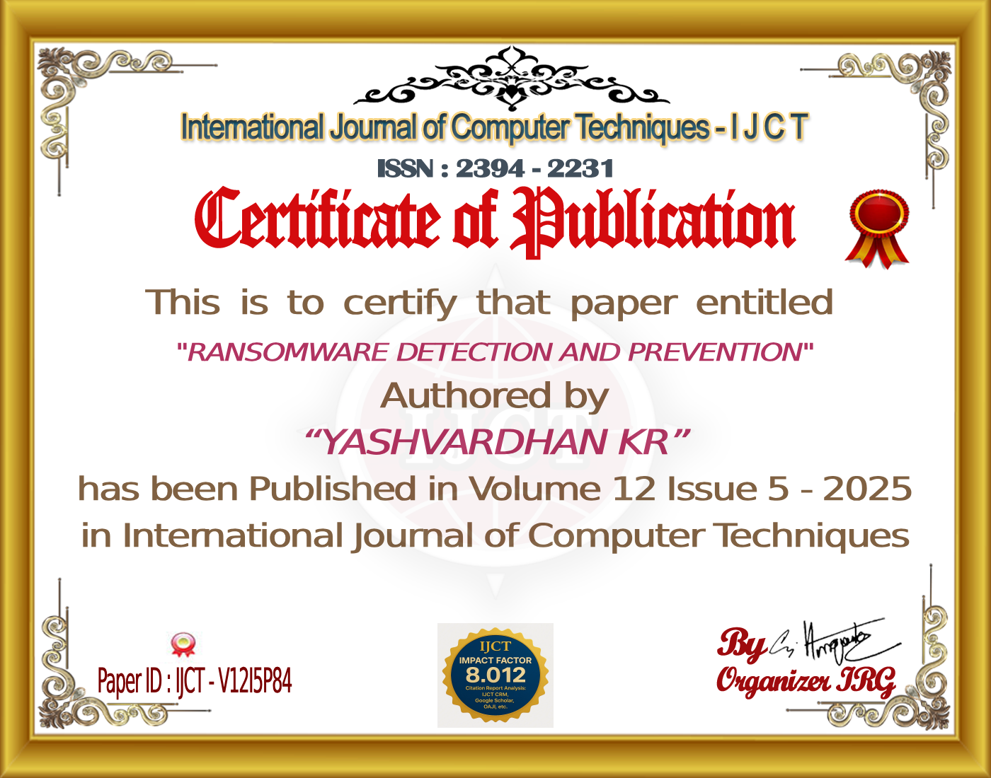 RANSOMWARE DETECTION AND PREVENTION | IJCT Volume 12 – Issue 5 | IJCT-V12I5P84