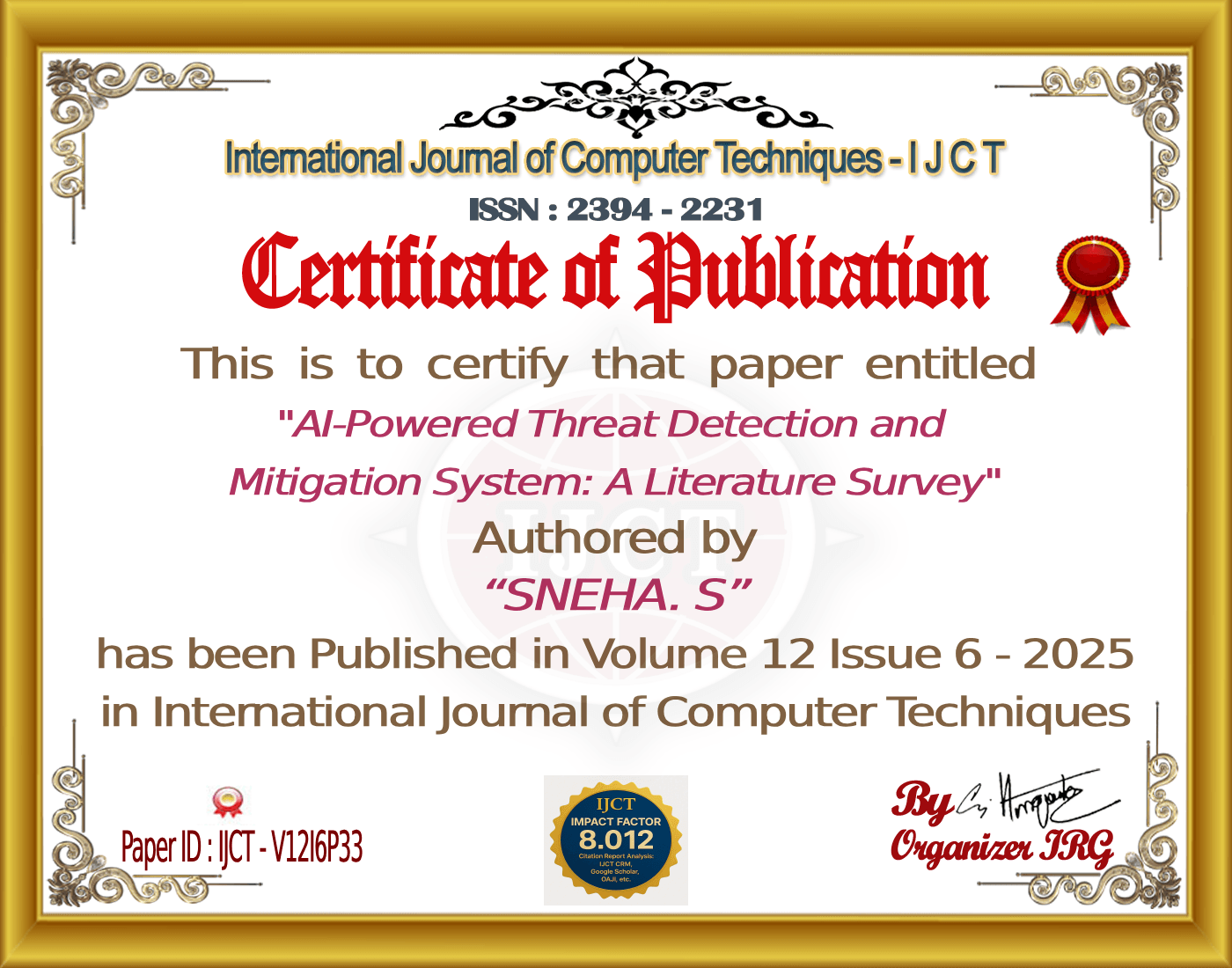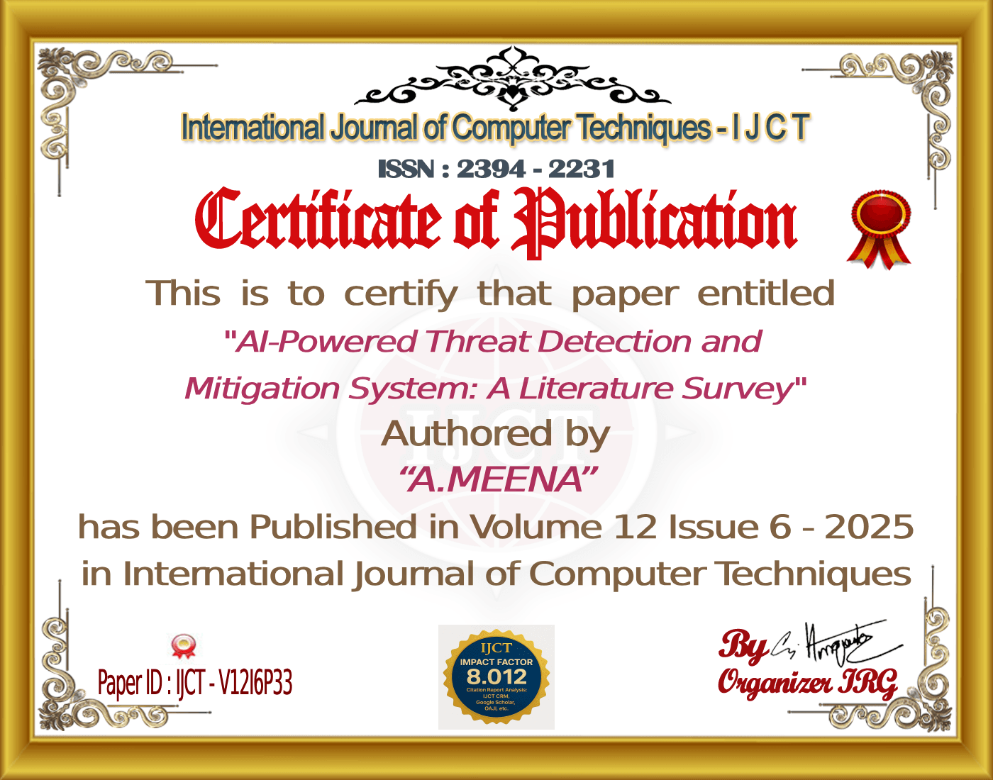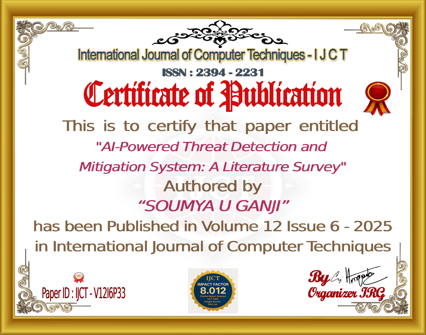 SNEHA. S , SOUMYA U GANJI , Dr. Guruprasad YK (2025). AI-Powered Threat Detection and Mitigation System: A Literature Survey. International Journal of Computer Techniques, 12(6). ISSN: 2394-2231.